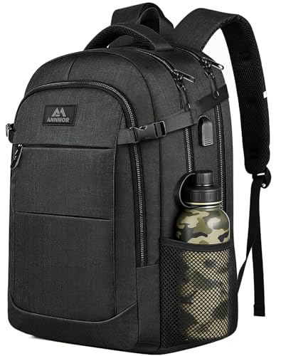 ANNMOR Mochila portátil 15,6–17,3" con puerto USB y apertura 180° tipo maleta, negro