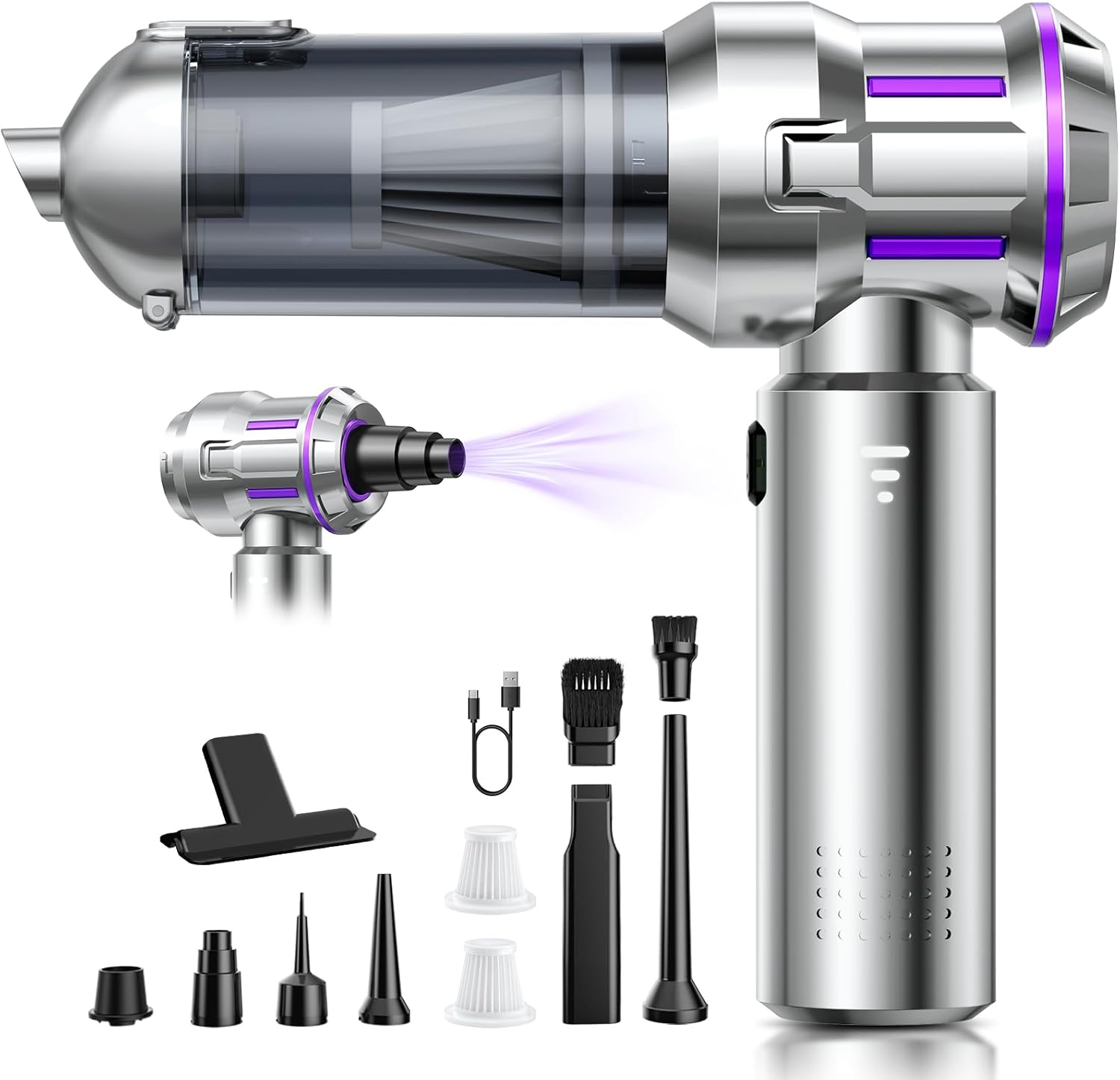Este Aspirador de Mano ofrece una potencia de 25000 Pa para una limpieza profunda en casa, coche y mobiliario. Con tres niveles de succión ajustables y un motor brushless de alta velocidad, mejora notablemente la eficiencia frente a modelos tradicionales y prolonga la vida útil del equipo. Es ideal para recoger arena, migajas y pelo de mascotas en alfombras, tapizados y textiles, facilitando una limpieza rápida y sin complicaciones en diferentes rincones del hogar y del vehículo. Su diseño compacto y la libertad de un modelo sin cable permiten abordar zonas de difícil acceso con facilidad y comodidad diaria.