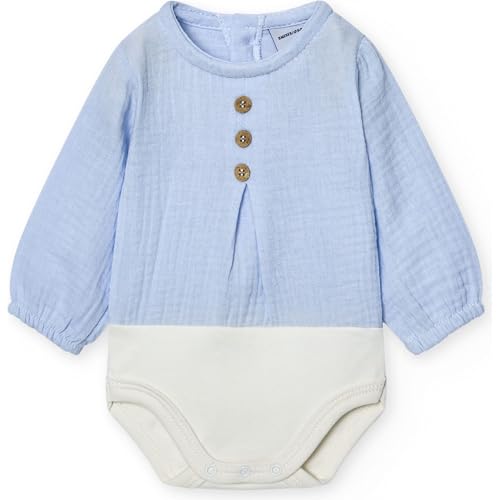 Este body de manga larga combina algodón 100% y un corte práctico para vestir y proteger al recién nacido. Ofrece una textura suave y hipoalergénica que ayuda a minimizar irritaciones en piel delicada, según fabricante. Los botones de madera en la espalda permiten abrirlo totalmente, lo que facilita los cambios de ropa y reduce movimientos del bebé durante el ajuste. Disponible en tonos pastel y neutros que combinan con otras prendas.