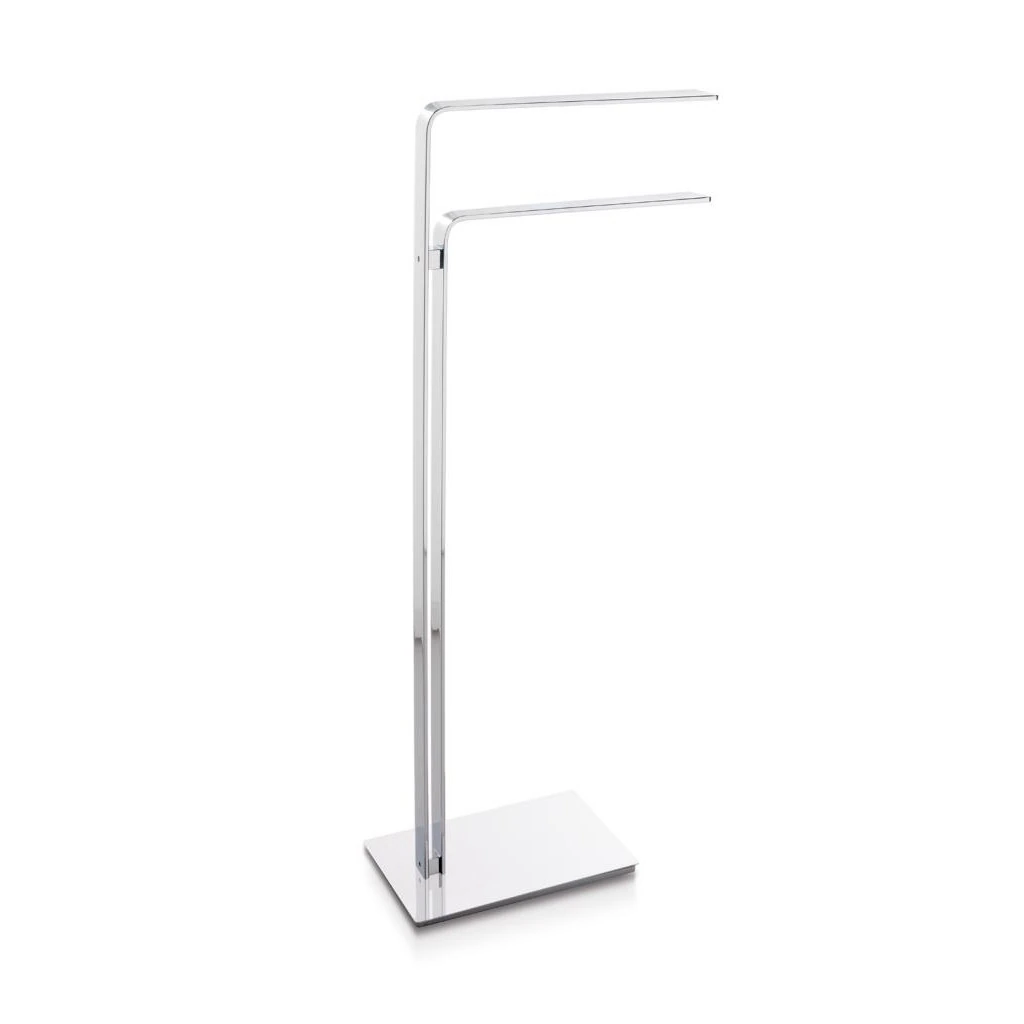 diseñado para colocar dos toallas sin requerir anclajes en pared.- Acabado brillante que facilita la limpieza y mantiene la apariencia cromada.