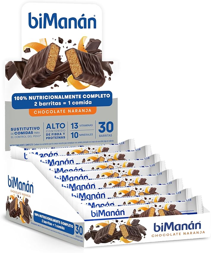 Este expositor de 30 barritas sustitutivas BiManán beSLIM combina sabor a chocolate con naranja y la practicidad de un formato para llevar, pensado para quienes buscan controlar el peso con una alternativa a la comida habitual. La propuesta aporta fibra y, según fabricante, dos barritas equivalen a una comida aportando 224 kcal, lo que facilita seguir una dieta baja en calorías manteniendo saciedad.