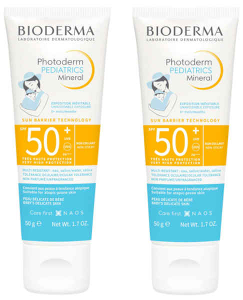 Bioderma Photoderm Pediatrics Mineral SPF50+ (2x50 g) — protector solar mineral para pieles sensibles