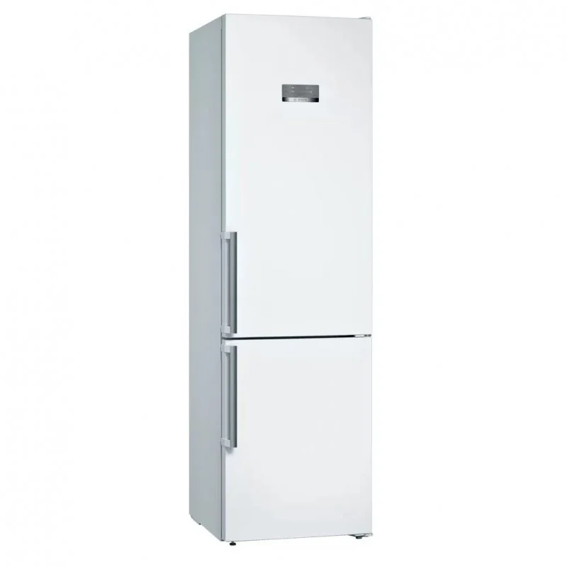 Bosch KGN397WEQ es un frigorífico combi blanco de 203 cm que combina conservación prolongada con el sistema No Frost para evitar la formación de escarcha y reducir tareas de mantenimiento.