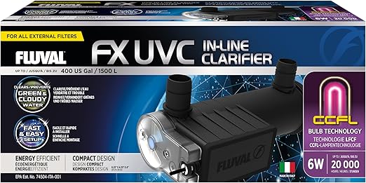 Este clarificador UVC para filtros fluviales FX de 6W es ideal para mantener el agua de acuarios limpia y cristalina. Funciona con una bombilla CCFL de 6 W, que se puede reemplazar de manera sencilla retirando solo 2 tornillos ⚙️.