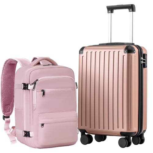 - COOLIFE set de maleta de cabina rígida y mochila de negocios (55 x 40 x 20 cm) con cerradura TSA y 4 ruedas gemelas