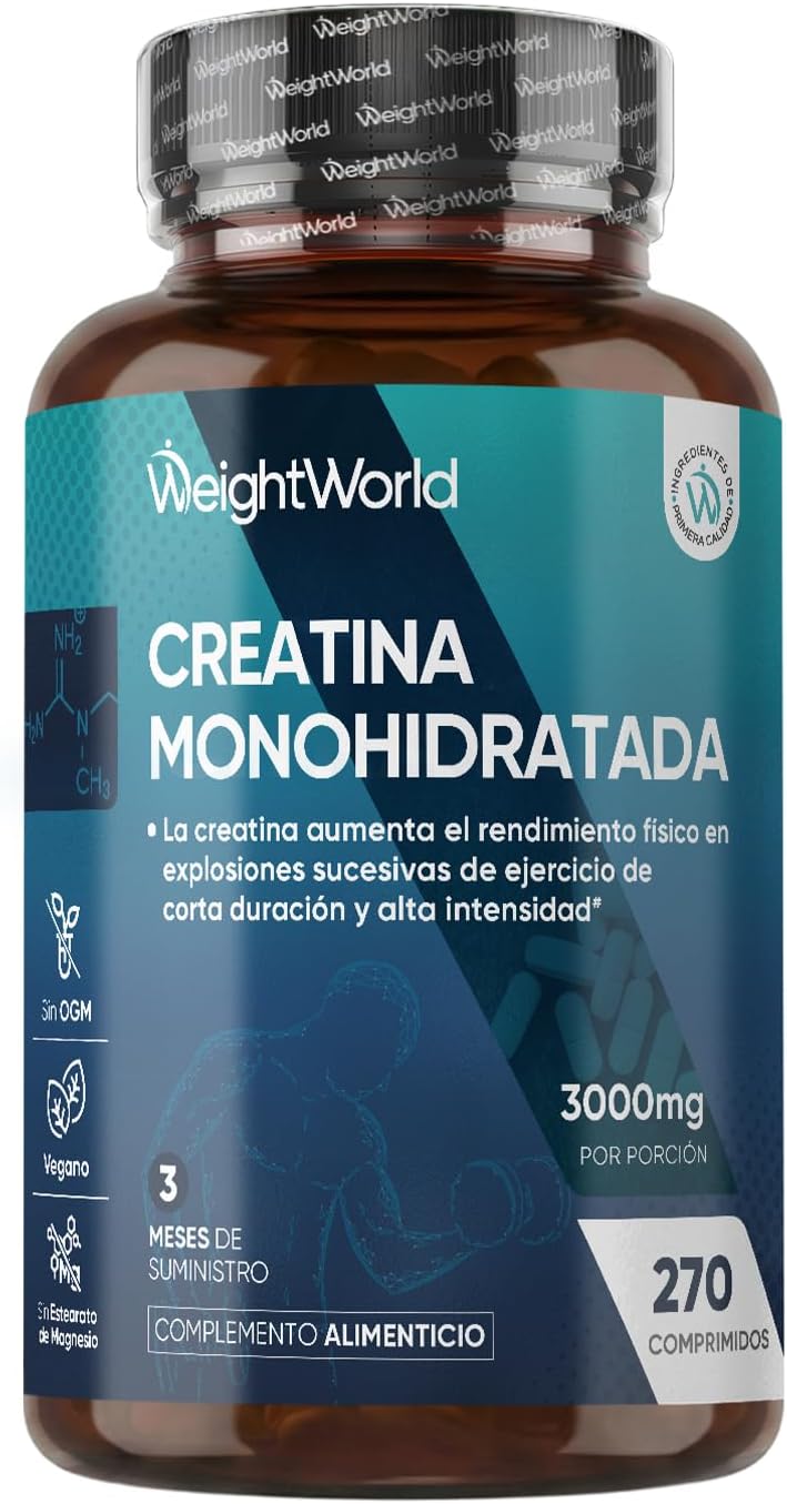 Creatina Monohidratada 3000mg - 270 Comp. 💪 Aumento de Fuerza