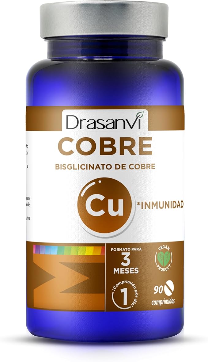 El DRASANVI Mineral Bisglicinato de Cobre 💊 90 Comprimidos Vegano es un suplemento diseñado para cubrir las necesidades diarias de cobre de forma segura y efectiva.