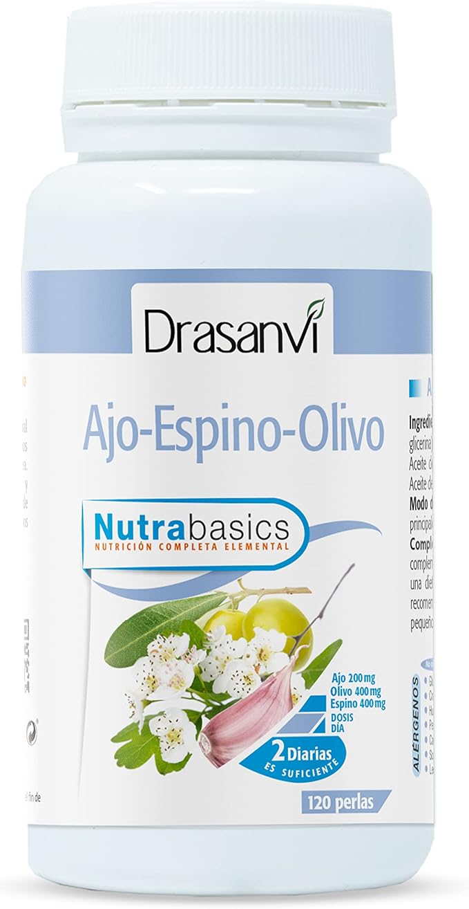 Drasanvi NutraBasics Ajo Espino Olivo 🌿 Salud Cardiovascular 120 perlas