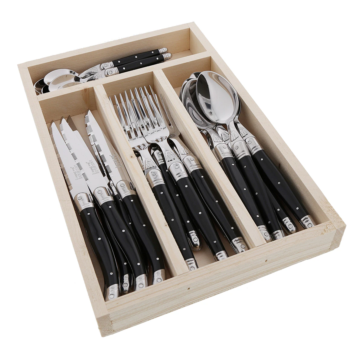- Contenido: 6 cucharas, 6 tenedores, 6 cuchillos y 6 cucharas de café