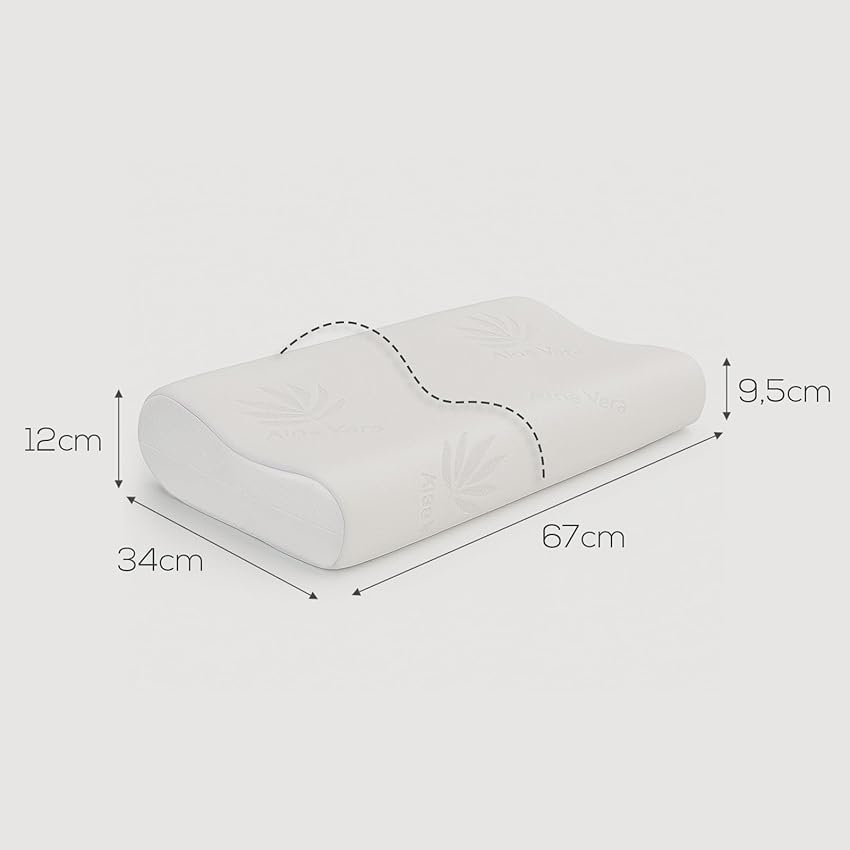 Esta almohada viscoelástica combina un núcleo de visco 100% con una funda tratada en Aloe Vera para ofrecer apoyo cervical y tacto suave. Su diseño busca adaptarse a la forma de cabeza y cuello, reduciendo la sensación de tensión y favoreciendo una postura más alineada durante el sueño. Según fabricante, la formulación del núcleo aumenta la durabilidad y la adaptabilidad del producto.