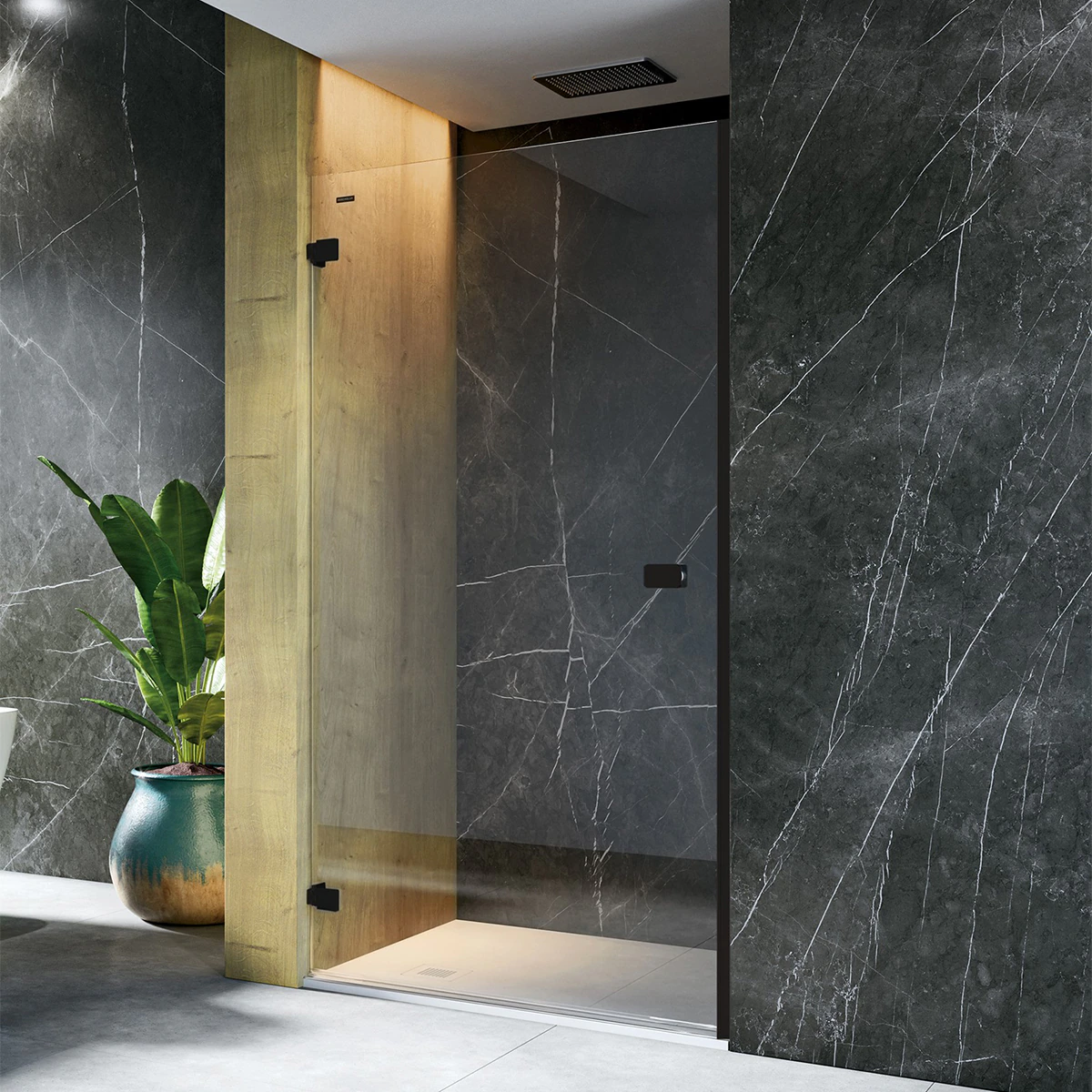- Perfilería de aluminio en acabado Platinum y Negro mate, combinando estética y resistencia. 🛁