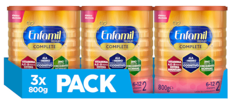 Este artículo corresponde al pack Enfamil 2 Premium Complete 3x800 g, diseñado para lactantes a partir de 6 meses. El producto ofrece un formato 3 latas para tener siempre a mano la nutrición necesaria durante esta etapa de crecimiento.