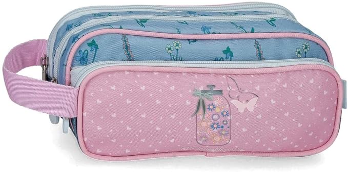 Este artículo, el Estuche Enso We Love Flowers en color rosa, mide 22x10x9 cm y está fabricado en poliéster de alta calidad 🎀. Diseñado con tres compartimentos independientes de cremallera, facilita una organización eficiente de tus objetos personales, ideales para llevar en la mochila, el bolso o en el portafolios. Además, incluye un asa lateral para mayor comodidad al transportarlo ✨.