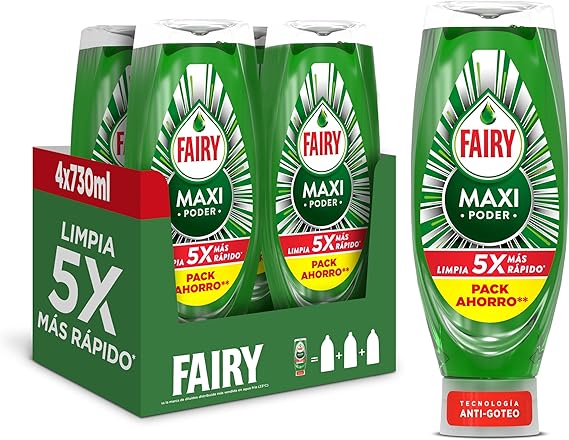 Fairy Maxi Poder 4 x 730ml 🌊 Lavavajillas Efectivo y Fácil