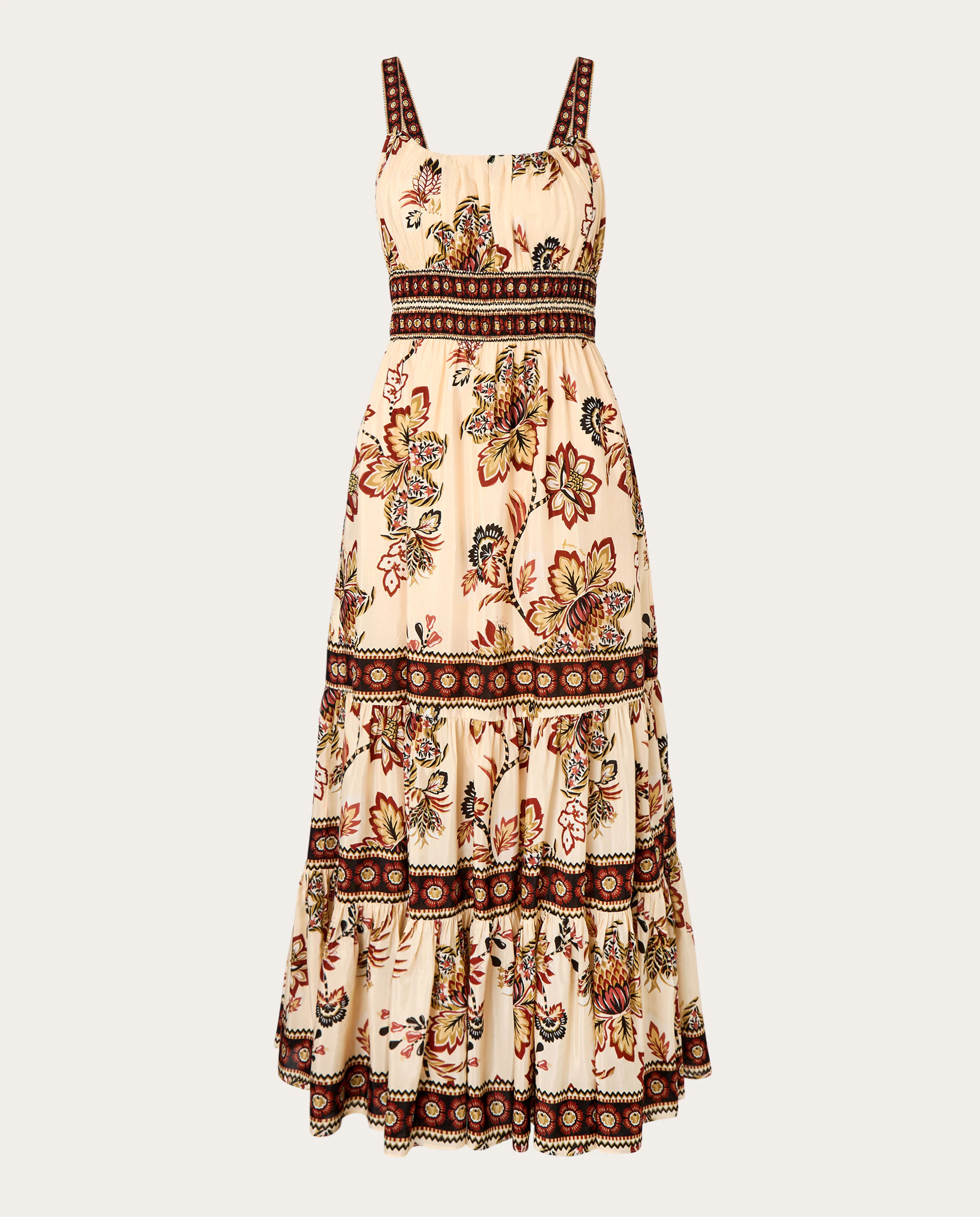Este vestido midi de algodón con mezcla de lino de FARM Rio combina comodidad y un aire veraniego para salidas informales y eventos de día. El corte con cintura fruncida y cordones aporta ajuste y volumen controlado, mientras que la silueta escalonada añade movimiento al caminar. Si buscas un vestido fresco y fácil de llevar, este modelo puede encajar en tu armario para crear looks relajados y femeninos. 🌿