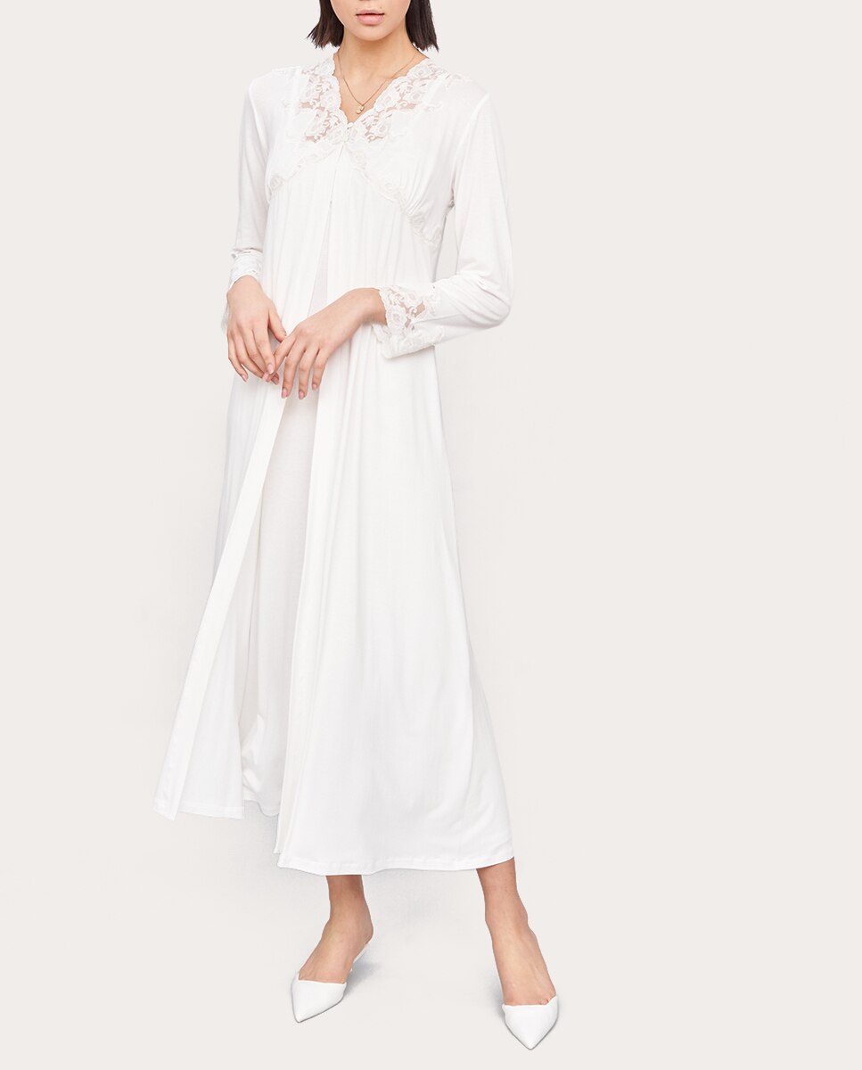 Este camisón largo de seda combina un corte fluido con detalles de encaje en cuello y mangas, pensado para quien busca comodidad y un acabado refinado en ocasiones especiales. Aporta caída y movimiento gracias a la falda con vuelo, lo que favorece libertad de movimiento y un aspecto elegante sin sacrificar confort. Según fabricante, la seda ofrece un tacto suave y una sensación ligera sobre la piel.