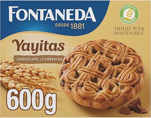 El producto Fontaneda Yayitas Galletas de Cereales con Chocolate 🍫 600 g combina 5 cereales y pepitas de chocolate en una textura crujiente que encanta a todos. Estas galletas están elaboradas con ingredientes naturales y enriquecidas con vitaminas B1, B2, B3, B5, B6 y hierro, lo que ayuda a mantener un metabolismo energético saludable ⚡.