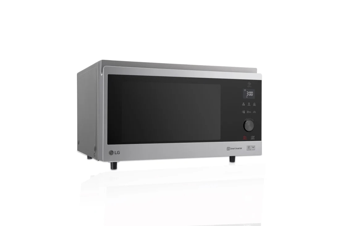 La modalidad de freidora de aire reduce el uso de aceite y ofrece texturas crujientes sin sumergir los alimentos en grasa. Además, la función de microondas con tecnología Smart Inverter ajusta la potencia de forma continua para resultados más uniformes. El acabado en acero y negro aporta un aspecto moderno que encaja en cocinas contemporáneas.