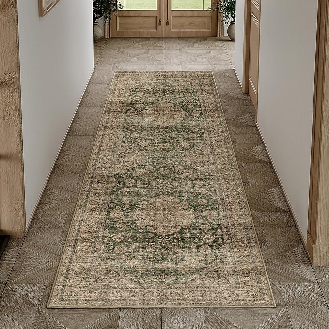 HUGEAR Alfombra Vintage Verde 60x240cm Antideslizante🧹