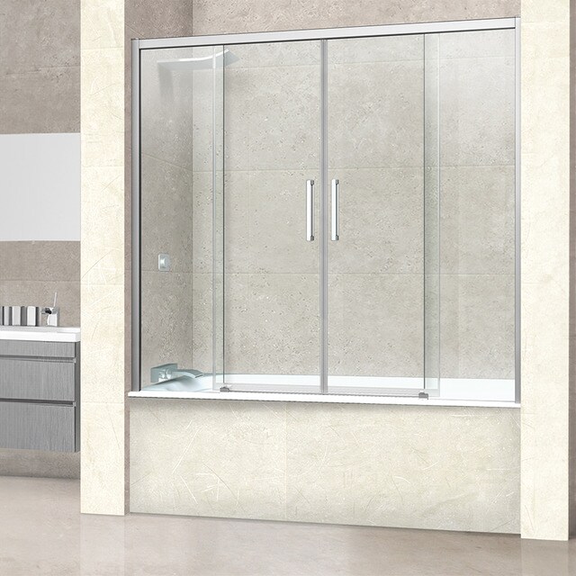 Esta mampara frontal para bañera combina paneles móviles y fijos para cerrar el espacio de ducha sin renunciar a entrada amplia. Ofrece vidrio templado transparente de 6 mm con tratamiento antical incorporado, lo que facilita el mantenimiento y mejora la visibilidad del baño. Disponible con perfilería de aluminio en tres acabados: cromo, negro mate y oro.