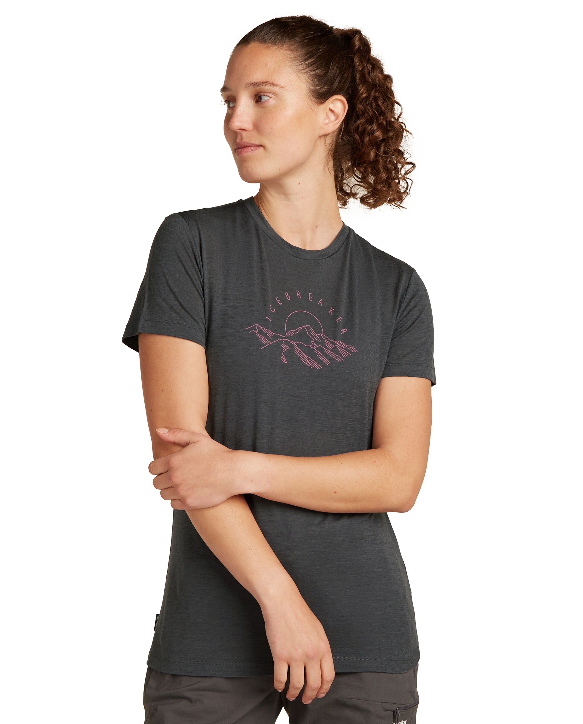 Esta camiseta técnica de mujer de Icebreaker combina transpirabilidad y tacto suave gracias a su tejido 100 % lana merina. Es una pieza versátil para actividades al aire libre y para uso diario cuando se busca control de olores y confort durante muchas horas. El diseño gráfico muestra un amanecer en la cumbre, aportando un aire retro y visual distintivo.