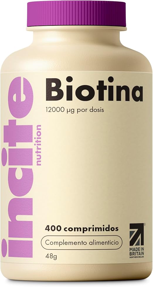 Incite Nutrition Biotina para cabello 🌿 12,000mcg, 400 cápsulas