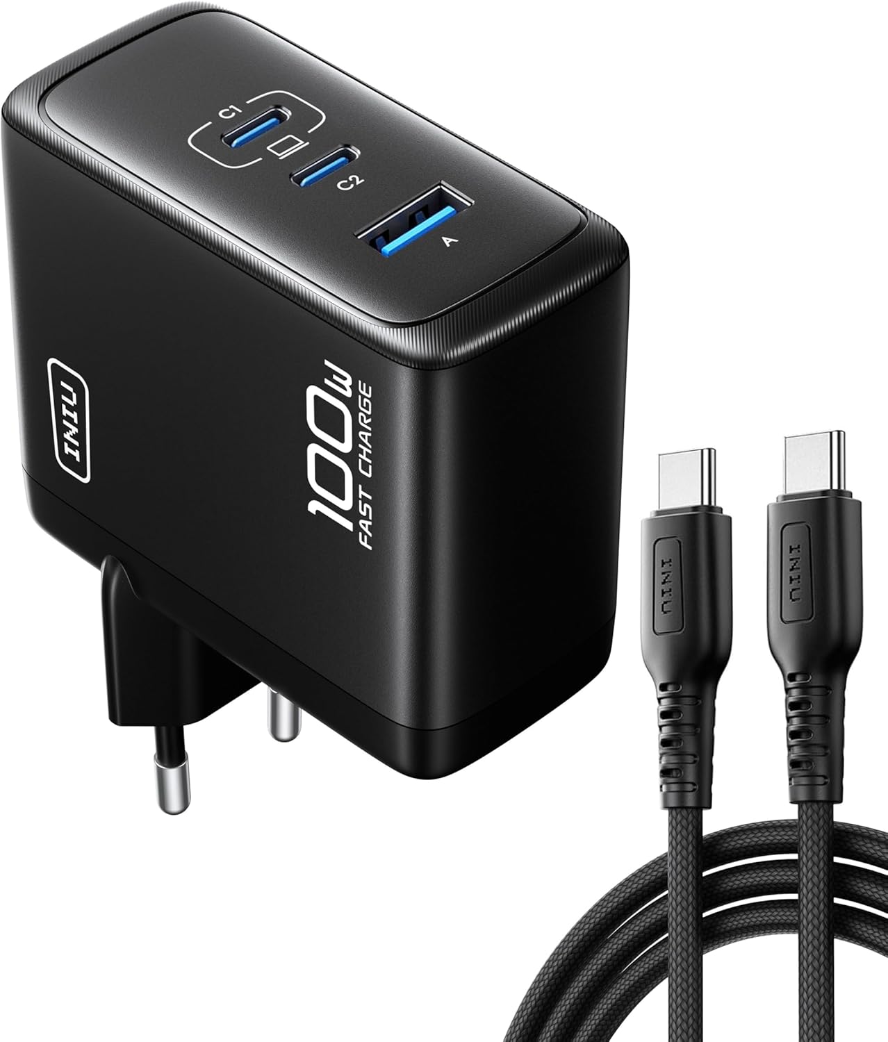 INIU 100W Cargador USB C ⚡ Carga Rápida para MacBook y Galaxy