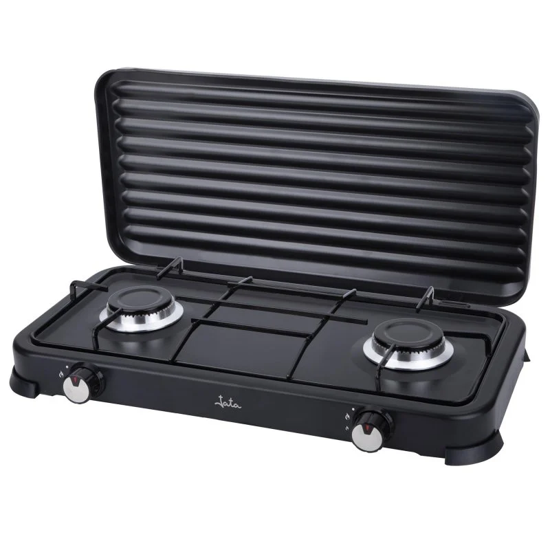 El producto Jata JECG2702 es una cocina de gas portátil con 2 zonas de cocción, perfecta para tus días de camping o actividades al aire libre. ⚒️✨ Diseñada en color negro, esta encimera es fácil de transportar y de usar gracias a su tamaño compacto y sus patas con goma antideslizante. Cuenta con una tapa protectora extraíble que ayuda a mantenerla segura y limpia cuando no está en uso.