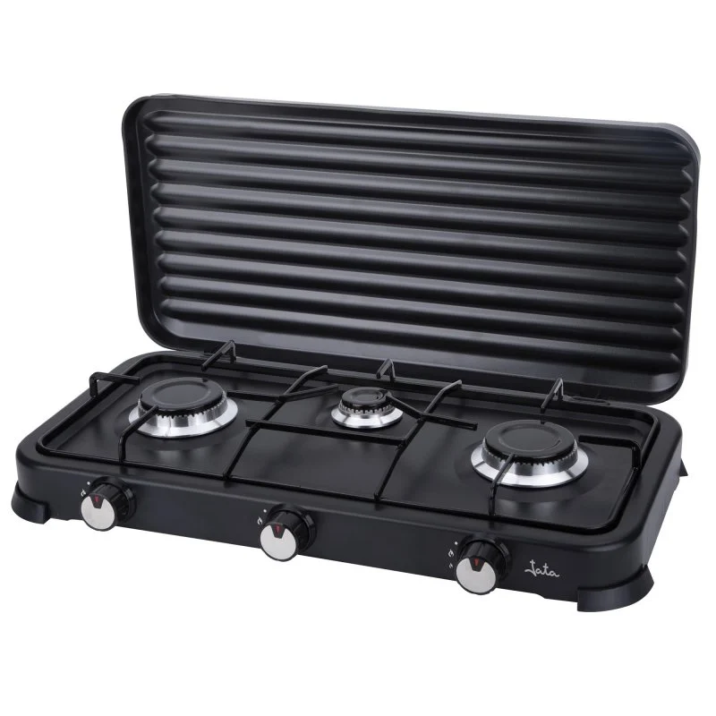 La cocina de gas portátil Jata JECG2703 ofrece tres zonas de cocción y compatibilidad con butano y propano, pensada para cocinar en exteriores con facilidad y control sencillo de la potencia. Si buscas una solución para camping o escapadas al aire libre, esta placa permite cocinar con tres fuegos manteniendo un montaje compacto y transporte cómodo.