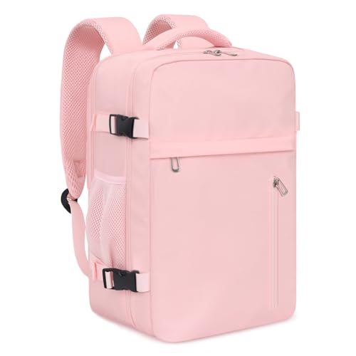 - KIRFEIHT Mochila de cabina para avión 40x30x20 cm (24L) con puerto USB y funda para carro – Rosado