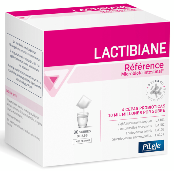 Lactibiane Referencia combina cuatro cepas seleccionadas por su eficacia y estabilidad, presentadas en sobres individuales que facilitan la toma fuera de casa. Ten en cuenta que los resultados pueden variar entre personas y que la acción depende de la constancia en la administración, según fabricante. 🍃