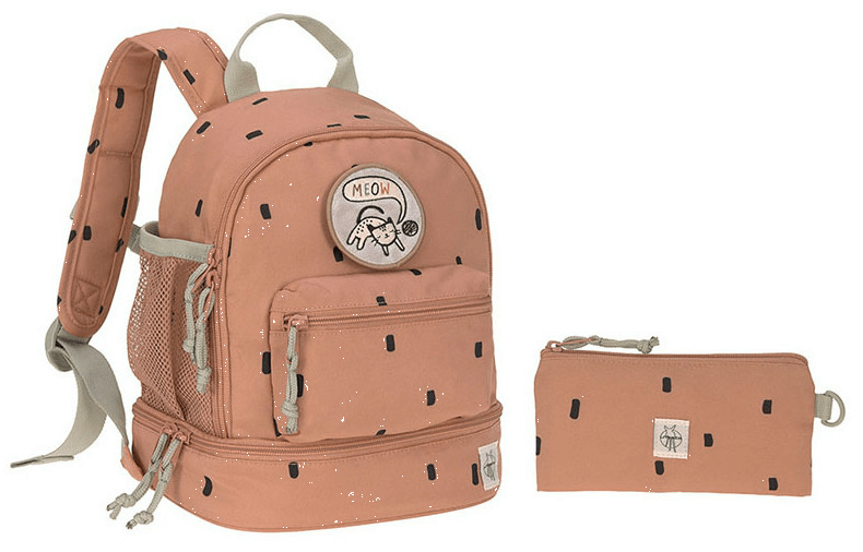 Compra esta Lassig Mini Mochila Happy Prints Caramel si buscas una mochila infantil compacta para el día a día que te facilite la organización (muda, comida y pequeños objetos), incluya un enfoque práctico para llevar la comida con bolsa de hielo y además permita que el niño personalice los parches.
