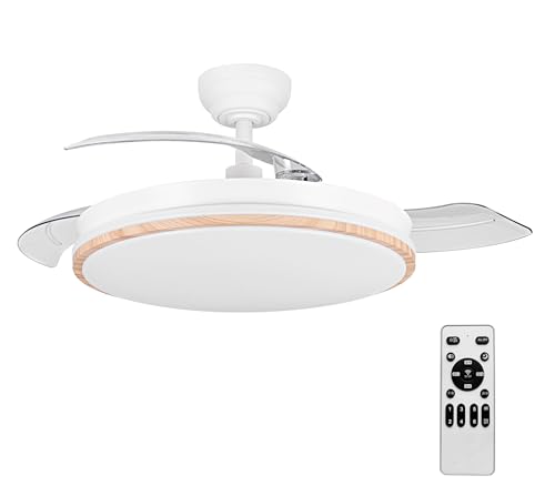 LEDUNI ventilador con luz LED 72W, 7590 lúmenes y mando a distancia (6 velocidades, aspas retráctiles, CCT 3000K/4000K/6000K)