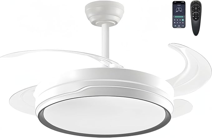 - Ventilador de techo con aspas retráctiles y iluminación LED CCT: combina un diseño innovador con motor DC de 30W, logrando un rendimiento eficiente y un consumo energético reducido ⚡.