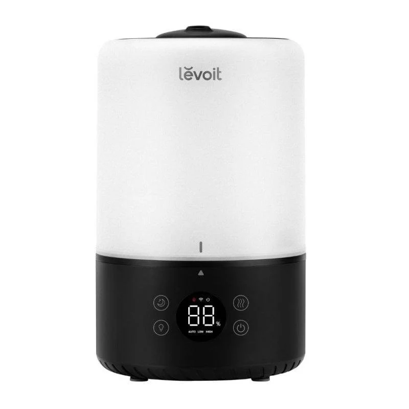 El dispositivo integra control total mediante la app Vesync y conexión WiFi, lo que posibilita gestionar funciones desde fuera de casa y supervisar datos en tiempo real. Tiene un sensor de humedad incorporado que regula automáticamente la intensidad de salida para mantener el nivel deseado, y su funcionamiento es silencioso según fabricante, lo que ayuda a no interferir en el sueño o en el trabajo. La capacidad del depósito es de 2 L, suficiente para sesiones prolongadas en espacios pequeños. Tecnología de doble nebulización ultrasónica que genera una niebla muy fina para una mayor cobertura.