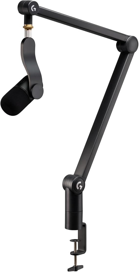 - Brazo de estudio Logitech G Compass: Fabricado en estructura de aluminio de alta calidad, con alcance de 81 cm y rotación de 360°, para máxima flexibilidad y manejo cómodo.