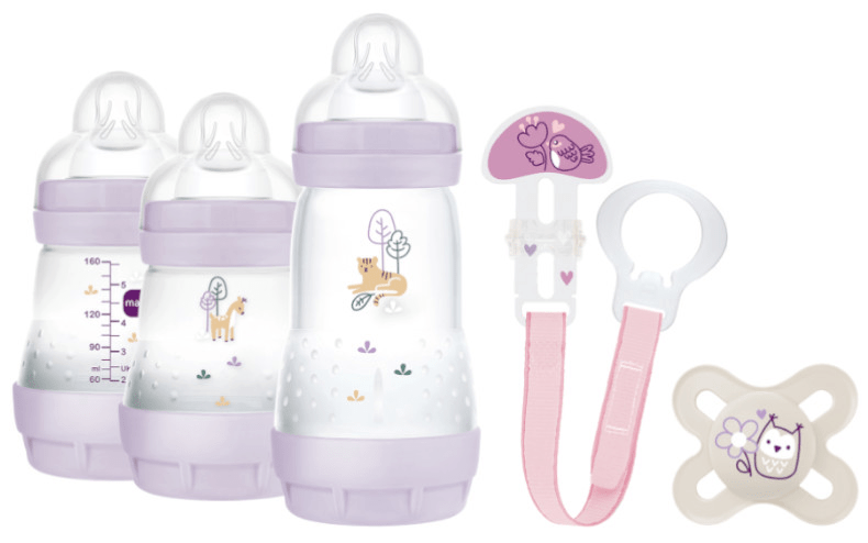 El MAM Welcome to the World Set completo de recién nacido rosa es, sobre el papel, un regalo pensado para cubrir lo más habitual en los primeros meses: alimentación con biberones y un chupete adecuado a la etapa inicial. Incluye varias piezas que suelen comprarse por separado, así que tiene sentido si estás empezando de cero o si quieres hacer un detalle práctico para unos padres recientes.