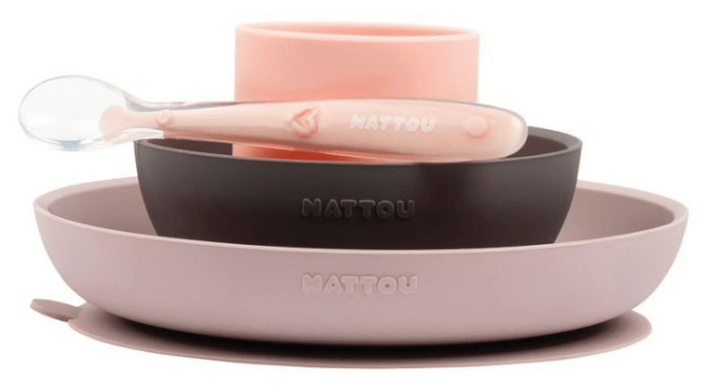 Nattou Set de vajilla de silicona Eggplant/Pink (4 uds) sin BPA