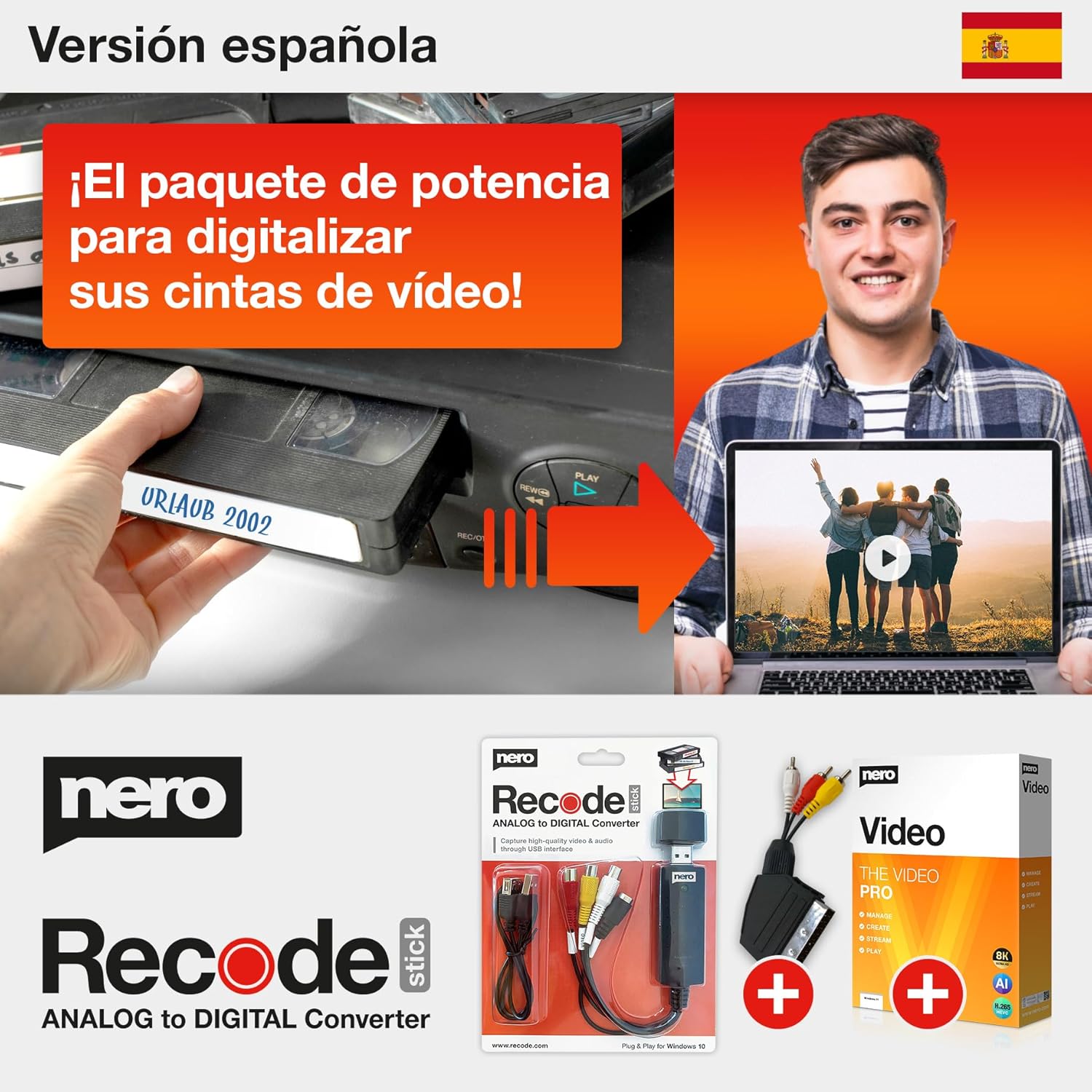 Este capturador Nero Recode Stick permite convertir tus cintas y soportes analógicos a archivos digitales de forma sencilla, pensado para quien quiere preservar recuerdos sin complicaciones. El dispositivo funciona con conexión USB y aporta una experiencia plug and play, con software de edición incluido y licencia de por vida para un PC. Si priorizas facilidad de uso y compatibilidad PAL, ganarás rapidez en la digitalización, si prefieres control avanzado, el editor ofrece plantillas y ajustes para pulir el resultado.