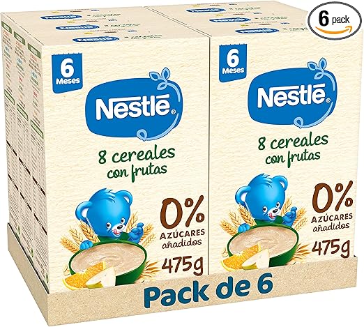 Nestlé Papilla 8 Cereales con Frutas 🍎 Sin Azúcar, 6x475 g