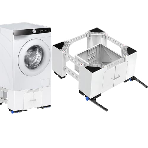 NIUXX Soporte universal para lavadora con cajón y ruedas, antivibración ajustable 42-69 cm y freno (hasta 400 kg)
