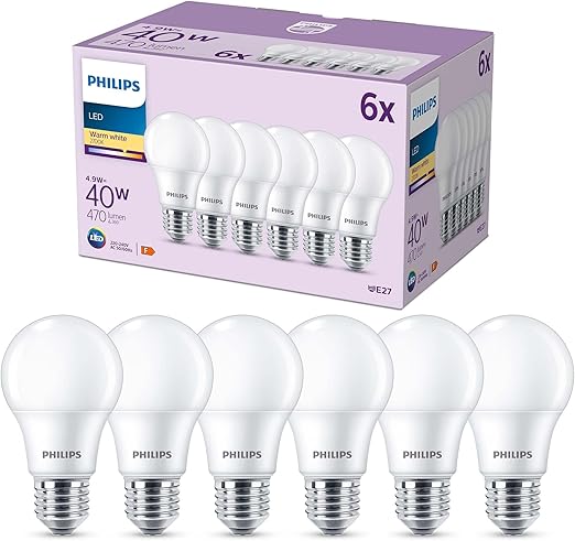 - Philips - Pack de 6 bombillas LED E27 40W blanca cálida