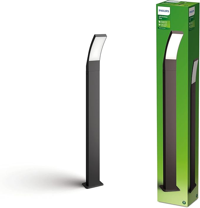 Este poste de exterior Philips Splay en acabado antracita combina funcionalidad y diseño elegante para iluminar espacios exteriores de forma eficiente.