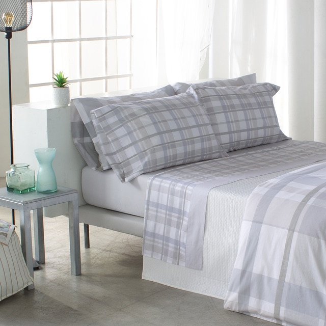 El conjunto incluye una sábana encimera y una funda de almohada. Para las medidas de 135, 150, 160 y 180 cm se suministran dos fundas de almohada. El patrón a cuadros es discreto y permite coordinarlo con fundas nórdicas o plaids sin recargar el ambiente 🛏️.