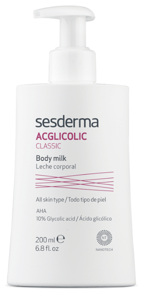 Sesderma Acglicolic Classic Leche Corporal 200 mlLeche corporal con acción renovadora, anti-edad e hidratante.BENEFICIOS- Está formulada con ácido glicólico que hidrata y tiene un suave efecto exfoliante que acelera la renovación celular.- Esta leche deja una piel más lisa y suave además de unificar el tono y reavivar la dermis.- Además, por su efecto peeling también es ideal para preparar la piel para otros tratamientos dermocosméticos.- Es una hidratante y antiedad tan completa que notarás los resultados enseguida. - Ayuda a unificar el tono y mejora la textura de la piel. - Adecuada para todo tipo de pieles.