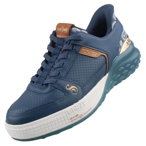El acabado mezcla cuero suave perforado con detalles estampados y ribete metálico en el talón, creando un aspecto de cancha renovado. La suela presenta tracción duradera y refuerzos en el talón medial y lateral para mejorar la estabilidad en superficies variadas. Ten en cuenta que las tallas pueden ajustarse según el corte y el usuario puede preferir probar la talla habitual antes de decidir.