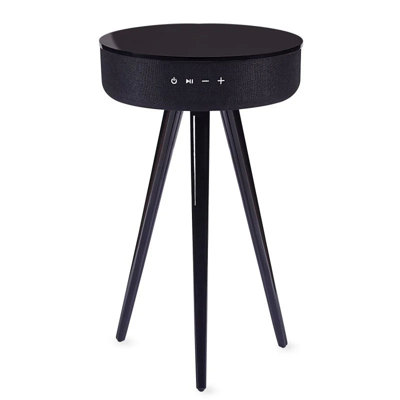La mesa con altavoz tiene una ventaja clara: no es un altavoz “de mochila”, sino más bien uno de sobremesa que te acompaña. El lacado negro encaja fácil con entornos más sobrios, y la variedad de colores (blanco, cristal negro, madera cerezo, madera roble) sugiere que se puede adaptar a la decoración.