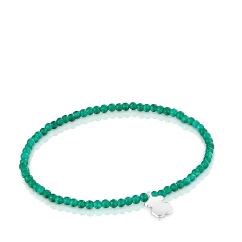 TOUS Pulsera Elástica Motivos con Bolas de Calcedónia Verde y Motivo Oso en Plata de Primera Ley 925 (17 cm)