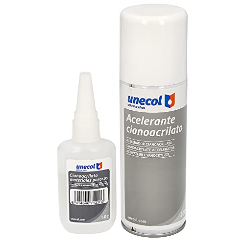 Kit Unecol 7156: acelerante en aerosol + cianoacrilato para materiales porosos (200 ml + 50 ml)