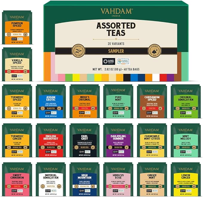 - VAHDAM Té Chai Surtido para Regalo ☕️ (5 Sabores, 20 Bolsitas)